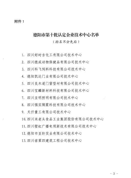 熱烈祝賀四川日韩国产一区二区三区四区五区飼料科技有限公司認(rèn)定為德陽市第十批認定企業技術中心(xīn)